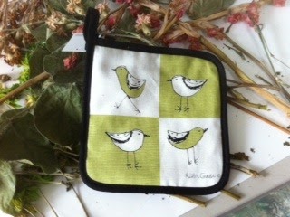 SCORE!!! One of my favourite part of any craft show is the trade. Love the trades!!! And this year, being year of the birdies I scored a fantastic birdy trade. Jocelyne of Rain Goose textiles makes the sweetest most fantastic birdy printed fabric and then sews them into awesome goodies. My red birdy pouch is a great pouch for makeup stuff. The potholder is hanging on the fridge and the tea towel I am going to hang on the wall of the studio. I could never bring myself to dirty this as an actual tea towel. I just love this tea towel.