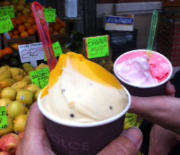 July has to be one of the most delicious months! Hanging out at the fruit shop is such a feast for my eyes. Oh the strawberries! the raspberries! the mangoes! such amazing colours. Even better when they are turned into ice cream. mmmmm…. ice cream. I do have a weakness for ice cream and gelato. There’s the BEST gelato shop right next to the post office. My current favourites are mango and passionfruit, or peach and raspberry. SO good! Of course there’s always dark chocolate and dulce de leche. Great combination. Let’s have a sweet talk people.
