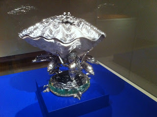 As cool as the armadillo is, my favourite was this one. A real shell with a silver lid on a pedestal of dolphins. Sitting on a glass base and topped with mermaids. Amazing work.
