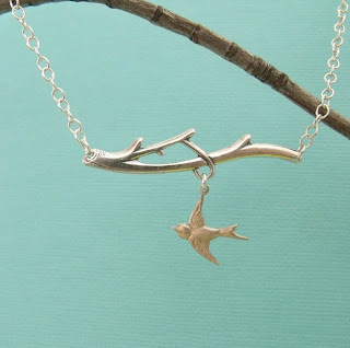 What says spring better than birdies flying? A silver sparrow soars towards the spring time in this new necklace.