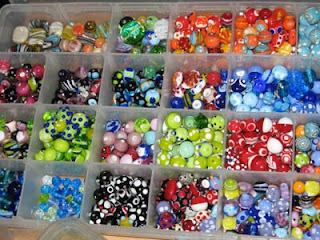 if it wasn’t for deadlines nothing would ever get done. at least not in my world. tomorrow is opening day of the One of a Kind spring show! argh! one of the things about glass is that there are a bazillion possibilities. so i have a bazillion ideas in my head when i sit down to make beads. i see the final jewelry piece in my head but after a couple of beads i see several other pieces. so i make those beads too. and then those beads give me ideas for different beads which will be different pieces of jewelry. and it keeps going round and round. so i end up with oodles of beads and not enough time to make the jewelry. and then those beads roll around on my table and suggest different things altogether.