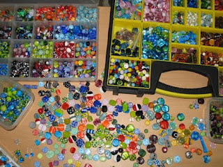 if it wasn’t for deadlines nothing would ever get done. at least not in my world. tomorrow is opening day of the One of a Kind spring show! argh! one of the things about glass is that there are a bazillion possibilities. so i have a bazillion ideas in my head when i sit down to make beads. i see the final jewelry piece in my head but after a couple of beads i see several other pieces. so i make those beads too. and then those beads give me ideas for different beads which will be different pieces of jewelry. and it keeps going round and round. so i end up with oodles of beads and not enough time to make the jewelry. and then those beads roll around on my table and suggest different things altogether.