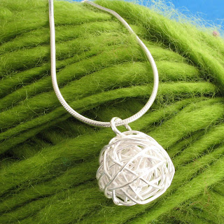 trying to get round beads to stay put in just the right position to get a shot is like herding cats. and finding a prop where they’ll stay put is hard, it has to be a solid colour and hold the round thing. so i was trying to get this little silver necklace (called the Ball of Yarn) to stay put on the glass shelf in the photo cube and it was all over the place. suddenly a light bulb clicked on, why not use a ball of yarn? and BINGO! it’s perfect! soft, squishy, holds the piece and provides just the right amount of colour. since i have oodles of yarn (yes, bad yarn shopping habit) from now on all round things will be shot on yarn. it’s just a matter of finding the right colour… and if i don’t have it in my stash then i can justify buying more yarn!